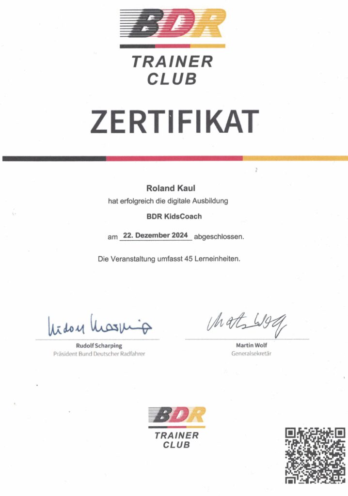 Ansprechpartner für den Radsport ist Roland Kaul unter der Telefonnummer 0176-52014606